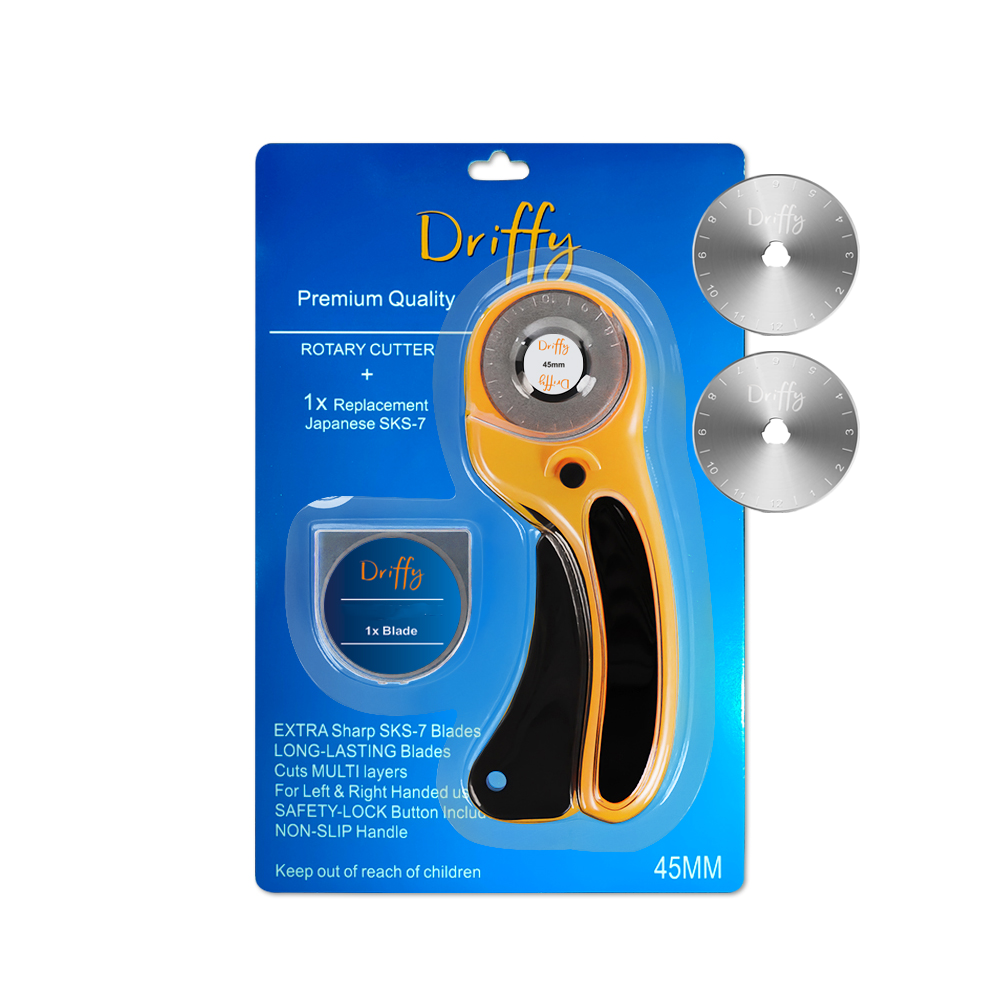 Upgrade your craft toolkit with the Driffy 45mm Rotary Cutter, the ultimate fabric cutting tool designed for precision, comfort, and safety. Say goodbye to tedious and inaccurate cutting with scissors. This essential tool is perfect for quilting, sewing, scrapbooking, leatherwork, and a wide range of other craft projects across the UK.